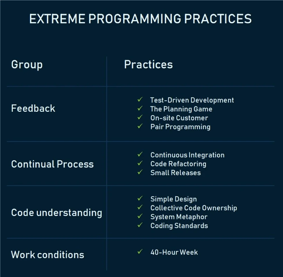 Las doce prácticas de XP son una solución efectiva en el desarrollo de software las cuales se adaptan a cada proyecto, ayudan con el apoyo moral y la eficiencia de los equipos, permitiendo perfeccionar la excelencia de un proyecto con un mejor resultado, baja posibilidades de errores y con entregas dinámicas y rápidas con mayor calidad.